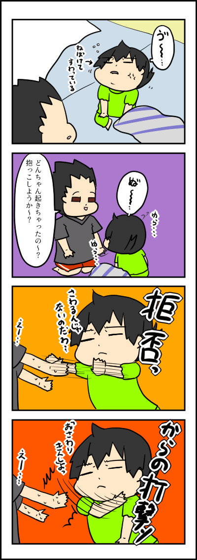 俺は俺の道を行く 2019年09月23日 完全に送迎担当に成り下がった母です(´・ω・`)幼稚園でやっぱりどうしてもよく息子が風邪をもらってくるのですが、熱が下がるのとほぼ同時にじんましんが発生するパターンが最近多くて。。。(´Д`)なにがかわいそうかって、熱が下がった!と親子で喜んでたら今度はじん ... 続きを読む 完全に送迎担当に成り下がった母です(´・ω・`)幼稚園でやっぱりどうしてもよく息子が風邪をもらってくるのですが、熱が下がるのとほぼ同時にじんましんが発生するパターンが最近多くて。。。(´Д`)なにがかわいそうかって、熱が下がった!と親子で喜んでたら今度はじんましんかい!っていうのはもちろんなんですが、私も子供の頃時々じんましんに見舞われてたので、あの!!燃えるような衝撃的なかゆさ!!!!あと目に訴えてくるあの酷い見た目!!!!本人が一番辛いのはもちろんなんですが、見てるこっちもかゆくなってくる感。。。゚゚(゚´Д`゚)゚私は年齢が上がって体力が付いてくると、そうそうじんましんが出ることはなくなったんですが、息子もそうだといいんだけどなぁ。。。ーーーーーーーーーーーーーーーーーーーーーーーーーーーーーーーーーーーーーーー タグ :#4コマ#ブログ#実録漫画#育児漫画#じんましん