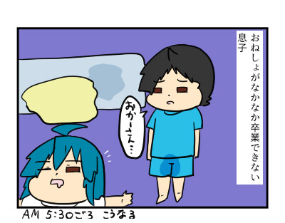 俺の辞書に「漏らした」という文字はない 2020年07月22日 はじめましての方、いらっしゃいませ!↑画像クリックで飛べます。ーーーーーーーーーーーーーーーーーーーーーーーーーーーーーーーーーーーーーーーーーーー4歳児なりのプライドを感じる今日この頃。夜用のおむつを履かなくなった息子なんですが、失敗もしばしば。。。3日 ... 続きを読む はじめましての方、いらっしゃいませ!↑画像クリックで飛べます。ーーーーーーーーーーーーーーーーーーーーーーーーーーーーーーーーーーーーーーーーーーー4歳児なりのプライドを感じる今日この頃。夜用のおむつを履かなくなった息子なんですが、失敗もしばしば。。。3日に1度は失敗してしまうのですが、真冬じゃないのでまだしばらくこのまま続けようと思います。ここでおむつに戻ってしまうと多分、息子のプライドに関わってくるのでお互いに耐え時な気がします。でも真冬までこんな調子だったらちょっと考えちゃうなぁ。。。失敗してしまう日の条件みたいなものもなんとなく見えてきて、・寝る時間が早すぎた時(7時~8時就寝→5時~6時起床だとほとんど失敗していない)・幼稚園なり家庭なりでショックなことがあった時(心の問題)・目が覚めた途端に出ちゃった系(誰も悪くない)↑おそらくこんな感じ。きっともうちょっとだと思います。がんばれ息子の膀胱。。。!もちろん膀胱炎にならない程度でね。。。!ーーーーーーーーーーーーーーーーーーーーーーーーーーーーーーーーーーーーーーー タグ :##コミックエッセイ##日常絵日記##4コマ##育児漫画##実録漫画##兄妹##4歳##2歳##ライブドアブログ##ブログ