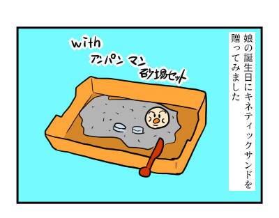 砂場に夢中なタイプだった幼少期を思い出す 2020年07月28日 はじめましての方、いらっしゃいませ!↑画像クリックで飛べます。ーーーーーーーーーーーーーーーーーーーーーーーーーーーーーーーーーーーーーーーーーーーアンパンマンのお砂場めっちゃ楽しいです。アンパンマン 遊びいっぱいどこでもすなばアガツマ(AGATSUMA)2016-07-17 ... 続きを読む はじめましての方、いらっしゃいませ!↑画像クリックで飛べます。ーーーーーーーーーーーーーーーーーーーーーーーーーーーーーーーーーーーーーーーーーーーアンパンマンのお砂場めっちゃ楽しいです。アンパンマン 遊びいっぱいどこでもすなばアガツマ(AGATSUMA)2016-07-17ラングスジャパン(RANGS) キネティックサンド 2LBラングスジャパン2014-09-15そしてキネティックサンド。すごいすごいとは聞いてましたが実物を触ったことがなく、購入後初めて触ったんですが、砂なんだけど砂じゃないみたい!本当に謎の感覚なんですが、触るのがものすごく気持ち良いんです!(*´д`*)小一時間触ってみた結果、なんとなく「練り消しを引っ張ってちぎれた時のふわふわした部分」の触り心地に似てる気がします。細かすぎて伝わらないモノマネみたいな文章になってますがつ、伝われ。。。!ーーーーーーーーーーーーーーーーーーーーーーーーーーーーーーーーーーーーーーー タグ :##ブログ##コミックエッセイ##日常絵日記##4コマ##育児漫画##実録漫画##兄妹##4歳##2歳##ライブドアブログ