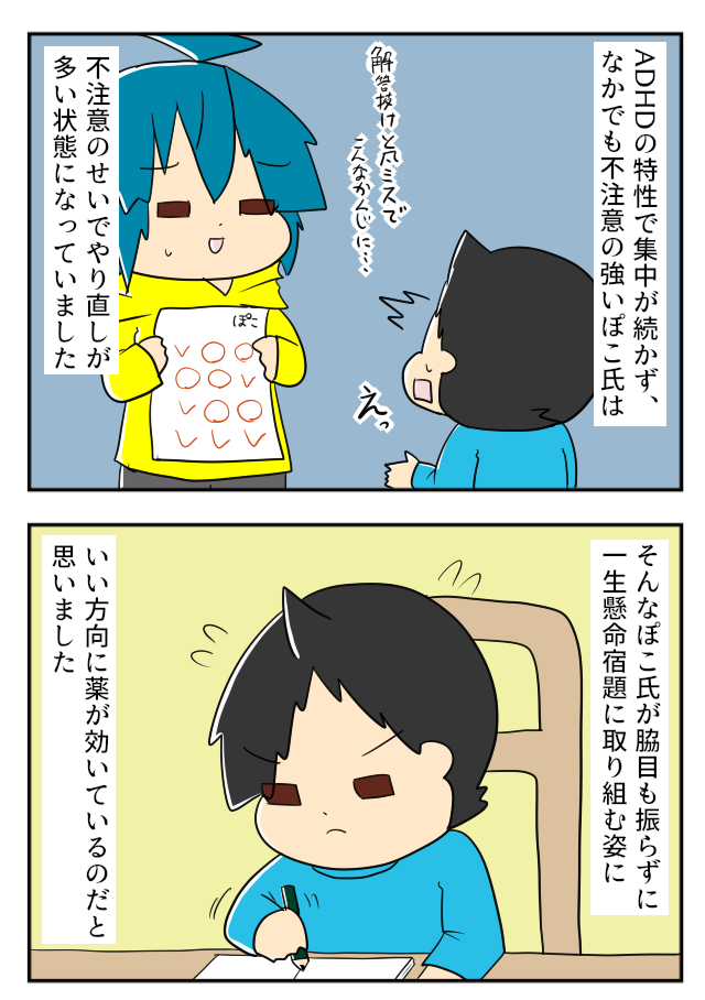 生来の真面目な性格と、不注意の強いタイプの特性が常に息子の中でぶつかり合っていたわけです。