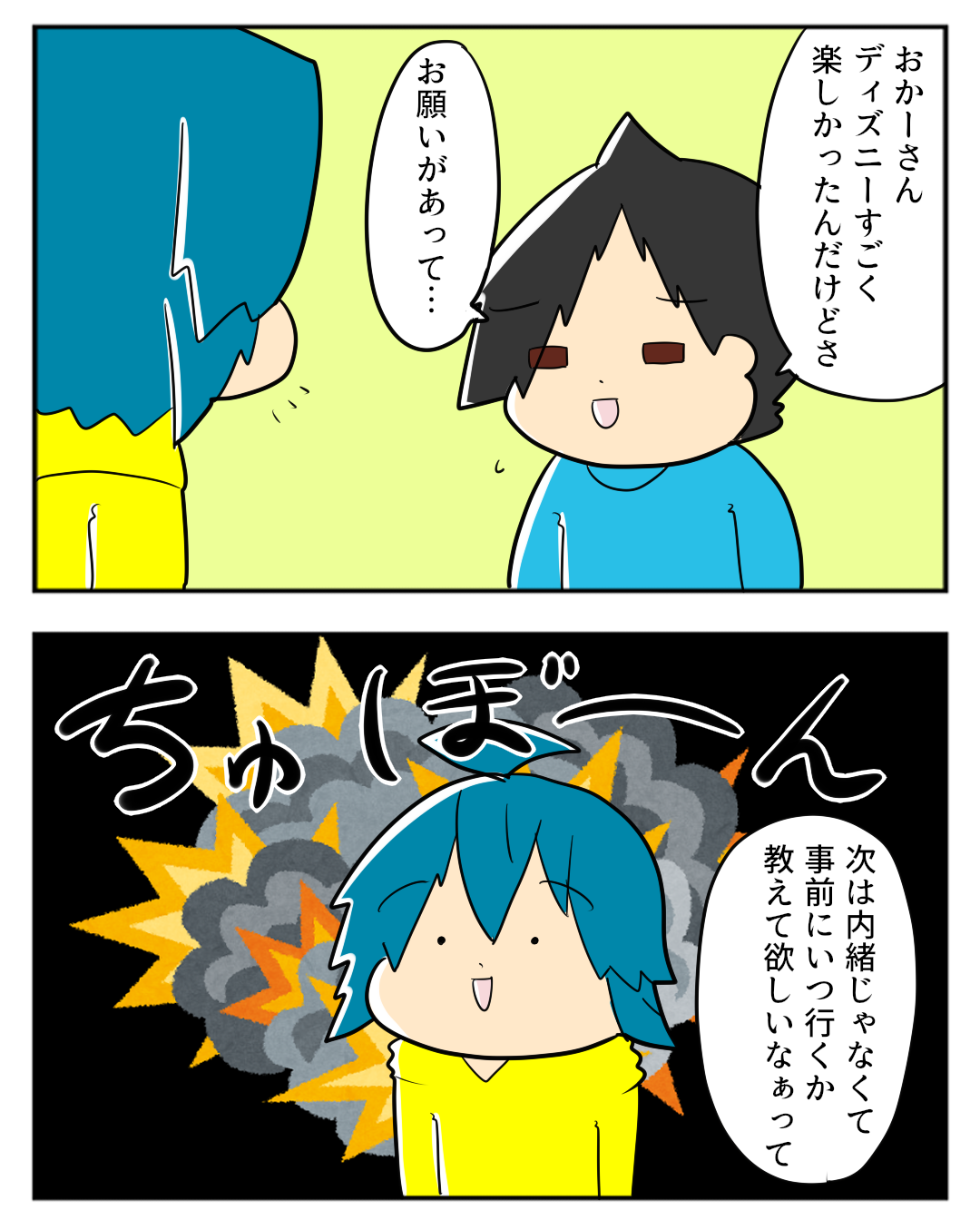 というわけで、ディズニー自体は楽しんでもらえたんですが、次回はサプライズじゃなくて一緒にいろいろ考えて行ってみるという楽しみができました。それもまた良し。